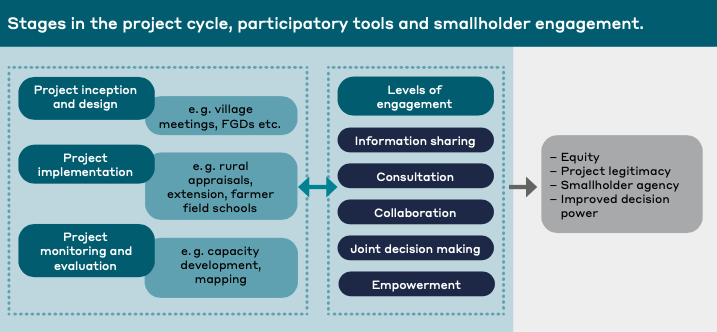 Figure 1: Stages in the project cycle, participatory tools and smallholder engagement