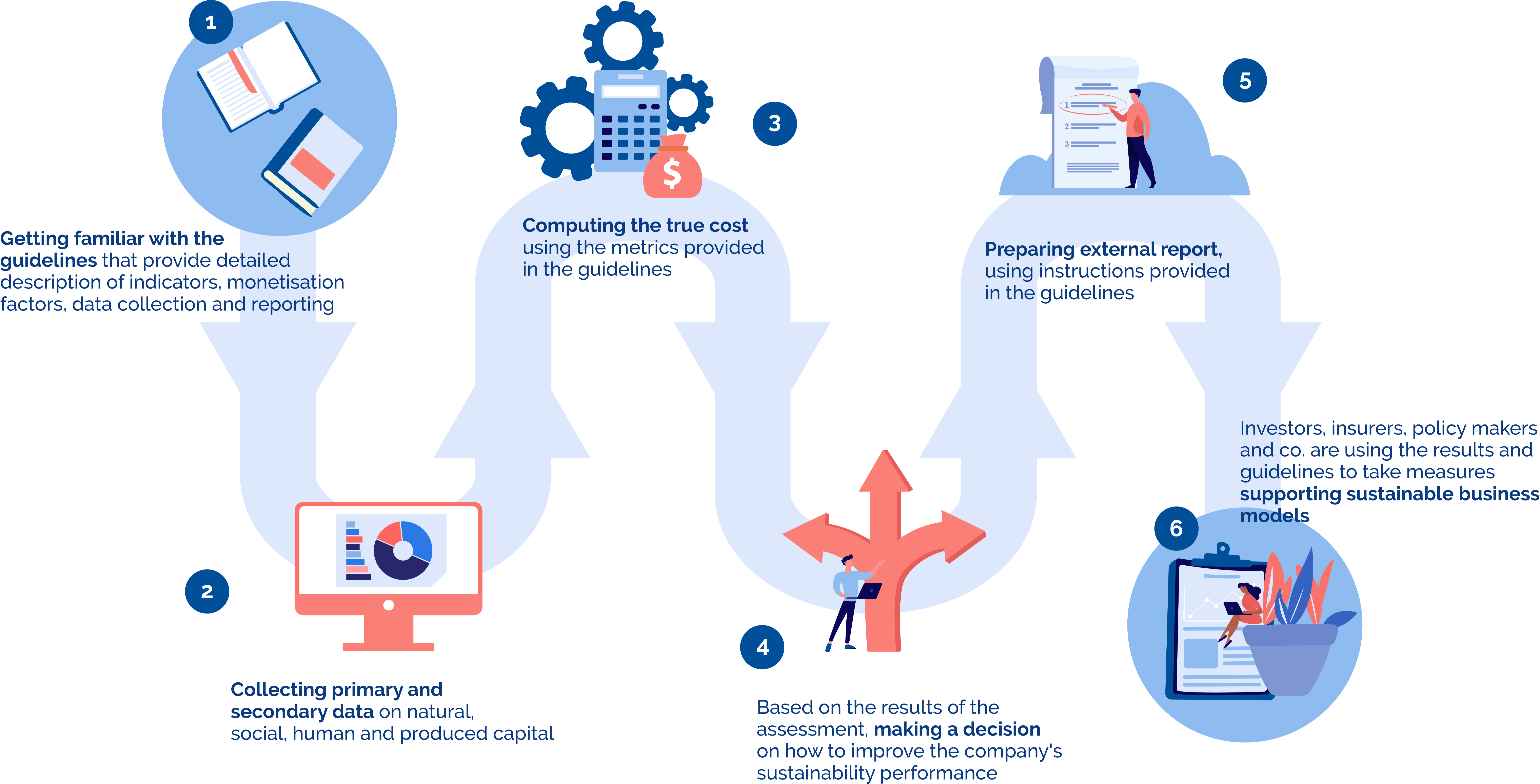 Since 2019 the True Cost Initiative has been developing a consistent, transparent and robust set of innovative, internationally applicable reporting guidelines with which true cost accounting can be put into practice, allowing for more accurate assessments of businesses in the food and farming sector, as well as for coherent reporting of sustainability information in businesses' annual reports.